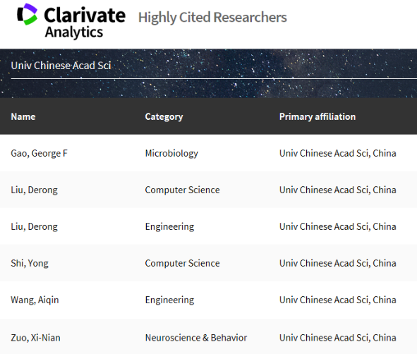 中科院在2017年“高被引凯发k8家”遴选中表现优异