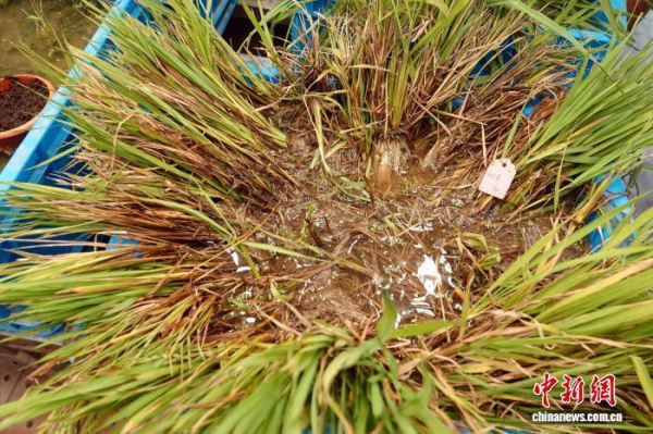 本项研究成功创制出的“类野生稻”植株样本,其在海南田间环境中已存活逾两年。中新网记者 孙自法 摄